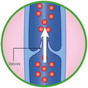 The veins allow blood to return to the heart. When you walk or exercise muscles contract to pump blood in the right direction. One-way valves stop blood from travelling backwards in the vein.
